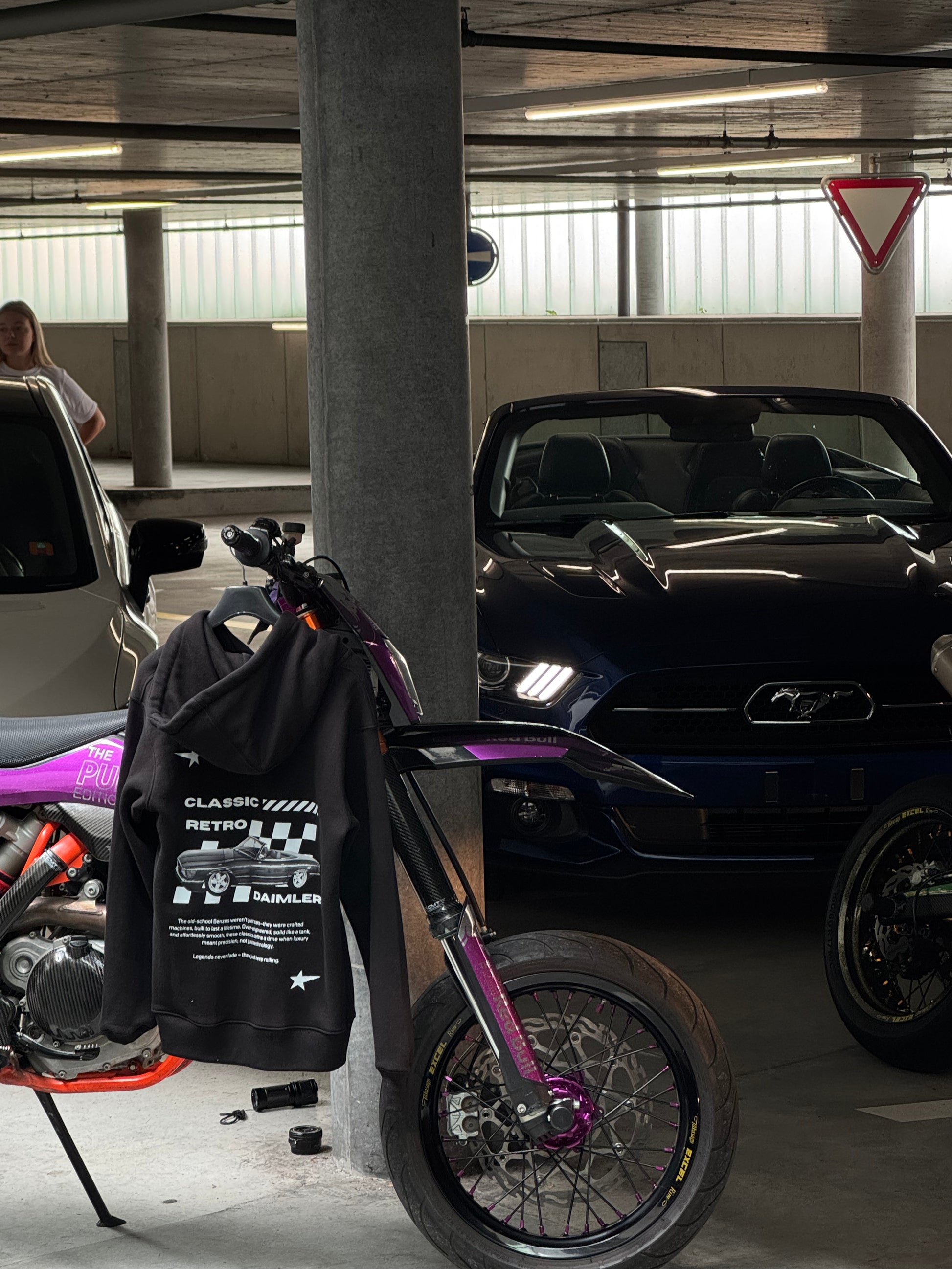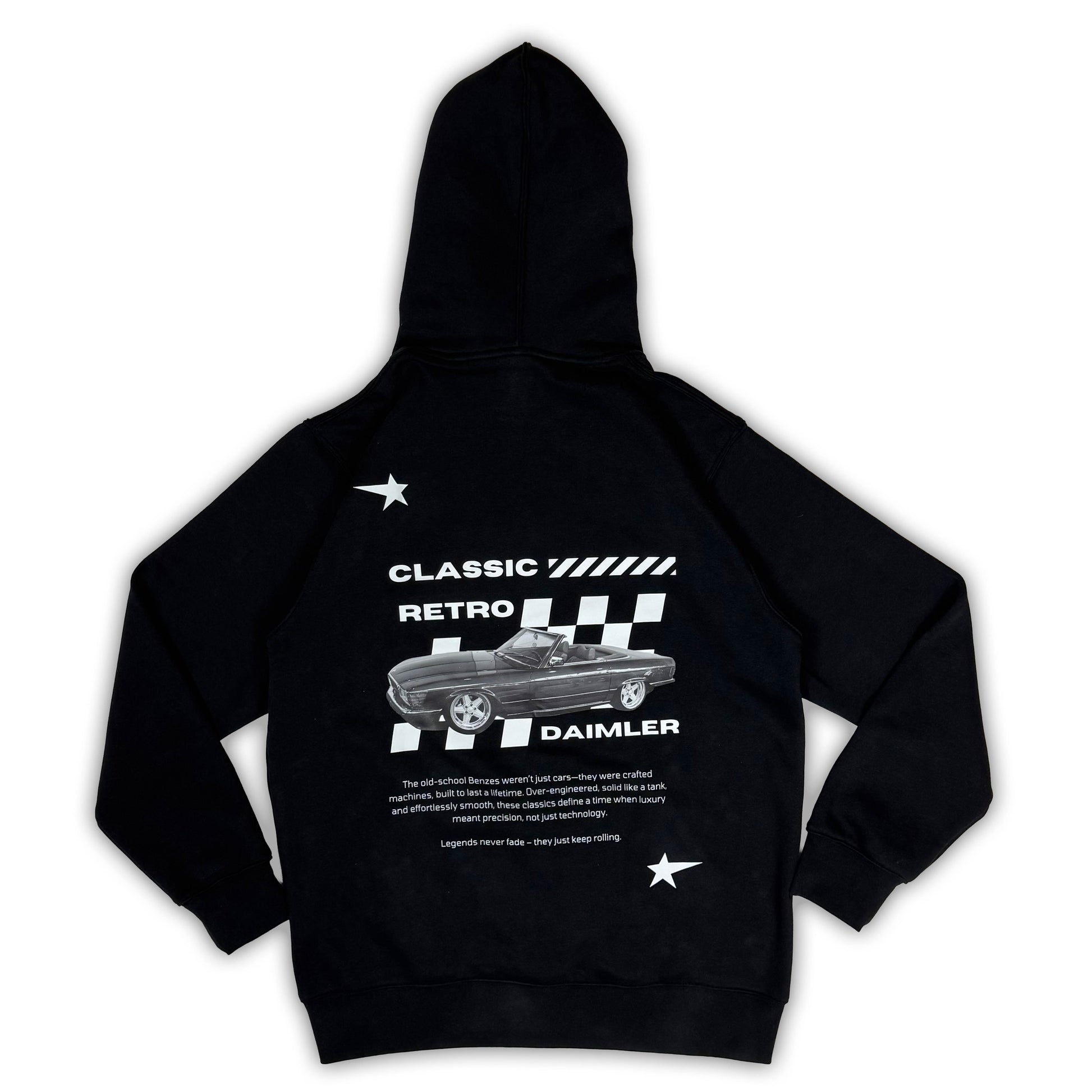 Ein Statement für Nostalgie, Geschwindigkeit und Stil. Der „Classic Retro Daimler“ Hoodie vereint den ikonischen Spirit klassischer Rennsport-Ära mit moderner Streetwear-Ästhetik. Aufwendig bedruckt mit hochwertigem Retro-Car-Design, kombiniert mit erstklassigem Stoff für maximalen Komfort und Langlebigkeit. Perfekt für alle, die die Eleganz vergangener Zeiten und die echten Legenden feiern.